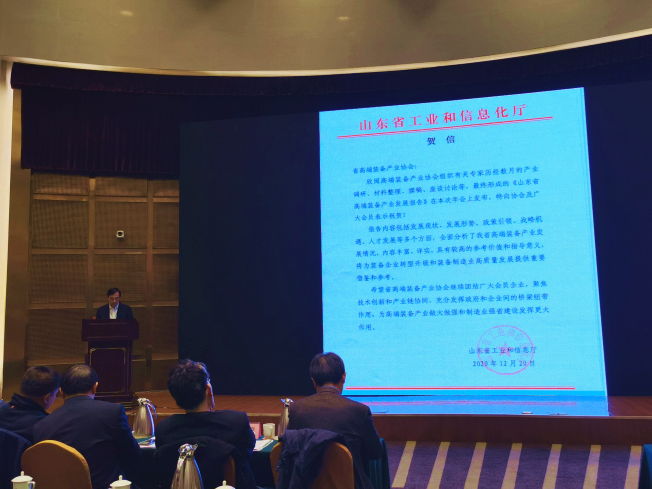 會議上發布了《山東省高端裝備產業發展報告》,山東省工業和信息化廳為《報告》發布發來了賀信。《報告》內容包括發展現狀、發展形勢、政策引領、戰略機遇四個方面,全面分析了高端裝備產業發展情況,內容豐富、詳實,具有較高的參考價值和指導意義。齊魯工業大學機械與汽車工程學院省機械設計研究院黨委書記林江海、山東師范大學曾慶良校長向有關企業進行了贈書活動。