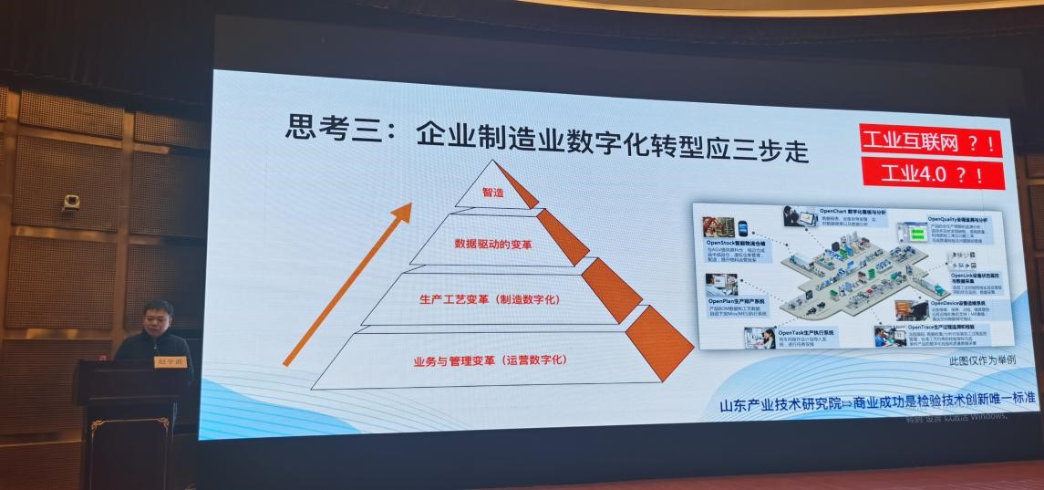 山東產業技術研究院副院長、山東(青島)產業技術研究院執行副院長趙宇波分析了山東裝備制造業現狀、面臨的新挑戰,提出了加快數字化轉型的發展建議與思考。