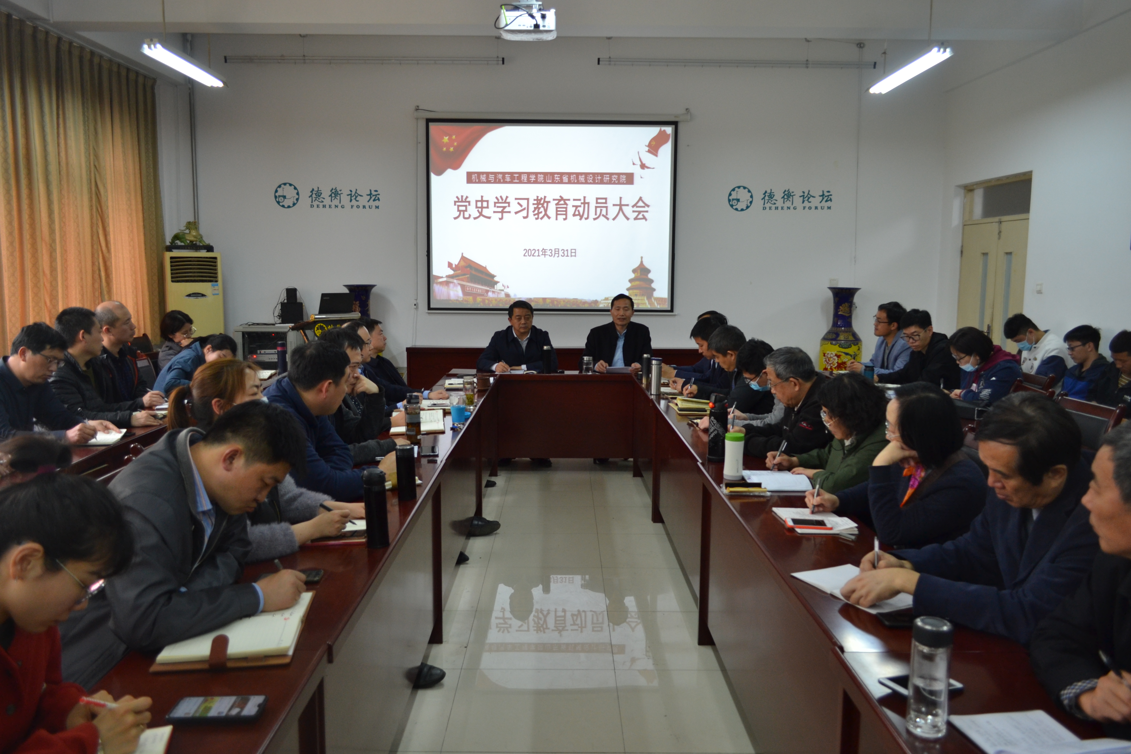 3月31日,機械與汽車工程學院山東省機械設計研究院黨委在機電樓A217召開黨史學習教育動員大會,黨委書記林江海作動員講話。黨委副書記宋開宇主持會議。院黨委委員、全體支部書記、其他支委及學生黨員代表等70余人參加大會,院長許崇海列席會議。