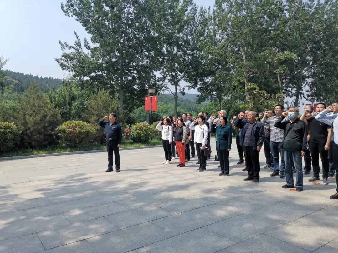 在初心廣場(chǎng),全體黨員面對(duì)莊嚴(yán)的黨旗,同舉右手,重溫入黨誓詞,在領(lǐng)誓人林江海書記的帶領(lǐng)下,黨員們用激昂的聲音再次許下對(duì)黨和人民的忠誠(chéng)誓言。在中共長(zhǎng)清縣委辦公舊址,黨員們參觀了“衛(wèi)生室”、“起居室”、“救亡室”等陳列著簡(jiǎn)單的工具以及抗日為國(guó)的標(biāo)語的房間,這些標(biāo)語是抗日戰(zhàn)爭(zhēng)時(shí)期最富感染力的時(shí)代語言。在革命烈士陵園,黨員們懷著無比崇敬的心情瞻仰和緬懷長(zhǎng)眠于烈士陵園的革命先烈。