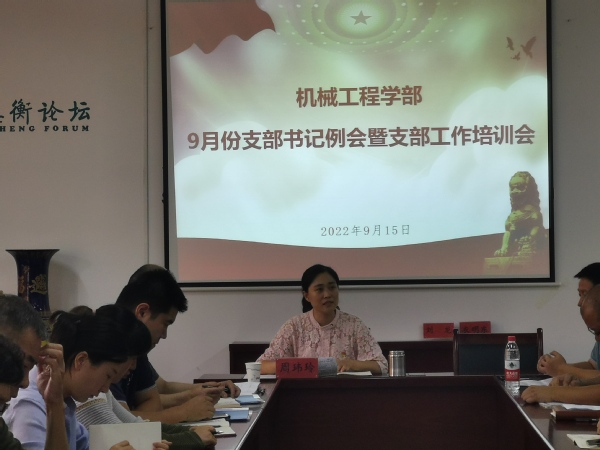 9月15日,機(jī)械工程學(xué)部黨委在機(jī)電樓A217召開9月份支部書記例會暨支部工作培訓(xùn)會。學(xué)部黨委委員、正處級組織員周瑋玲主持會議。學(xué)部全體黨支部書記、支部委員及組織宣傳科相關(guān)人員參加會議。
