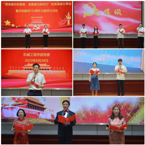 為慶祝中國共產黨成立102周年,深入貫徹黨的二十大精神,推進主題教育深入開展,展現學部黨員師生積極向上的精神風貌,6月28日下午,機械工程學部在行政樓學術報告廳舉辦“誦讀盛世新篇章,奮勇建功新時代”經典誦讀分享會暨慶祝建黨102周年主題黨日活動。學部黨政班子成員、全體教職工黨員、退休黨支部和學生黨支部代表近200人參加活動,活動由黨委委員、團委書記馬靜主持。