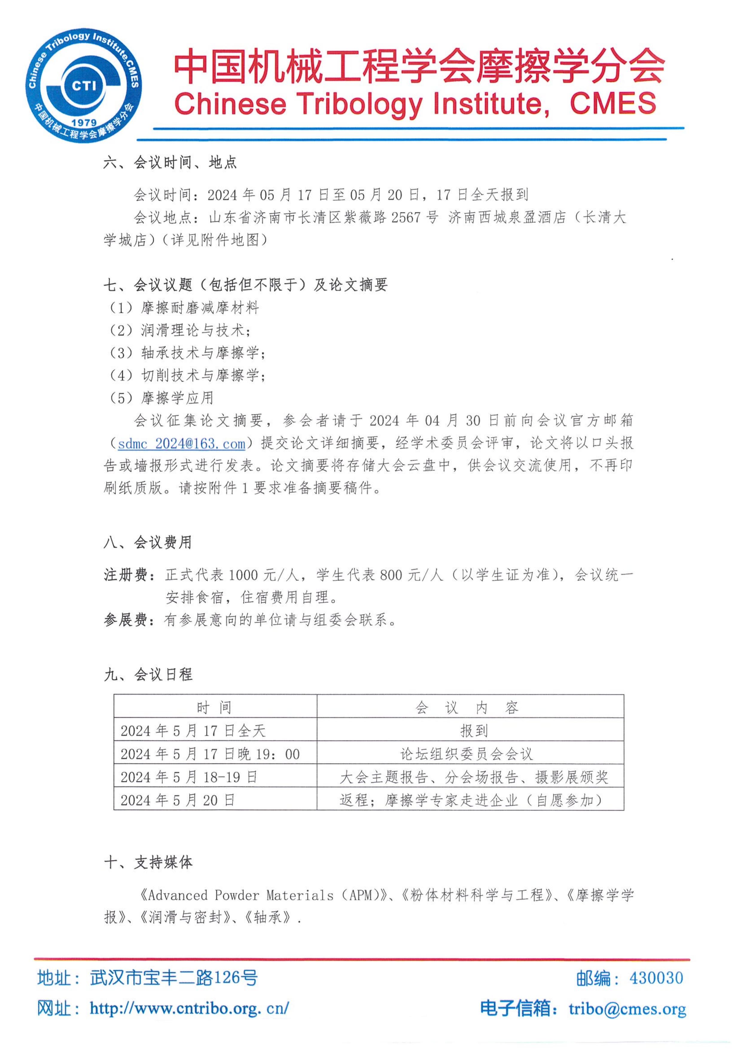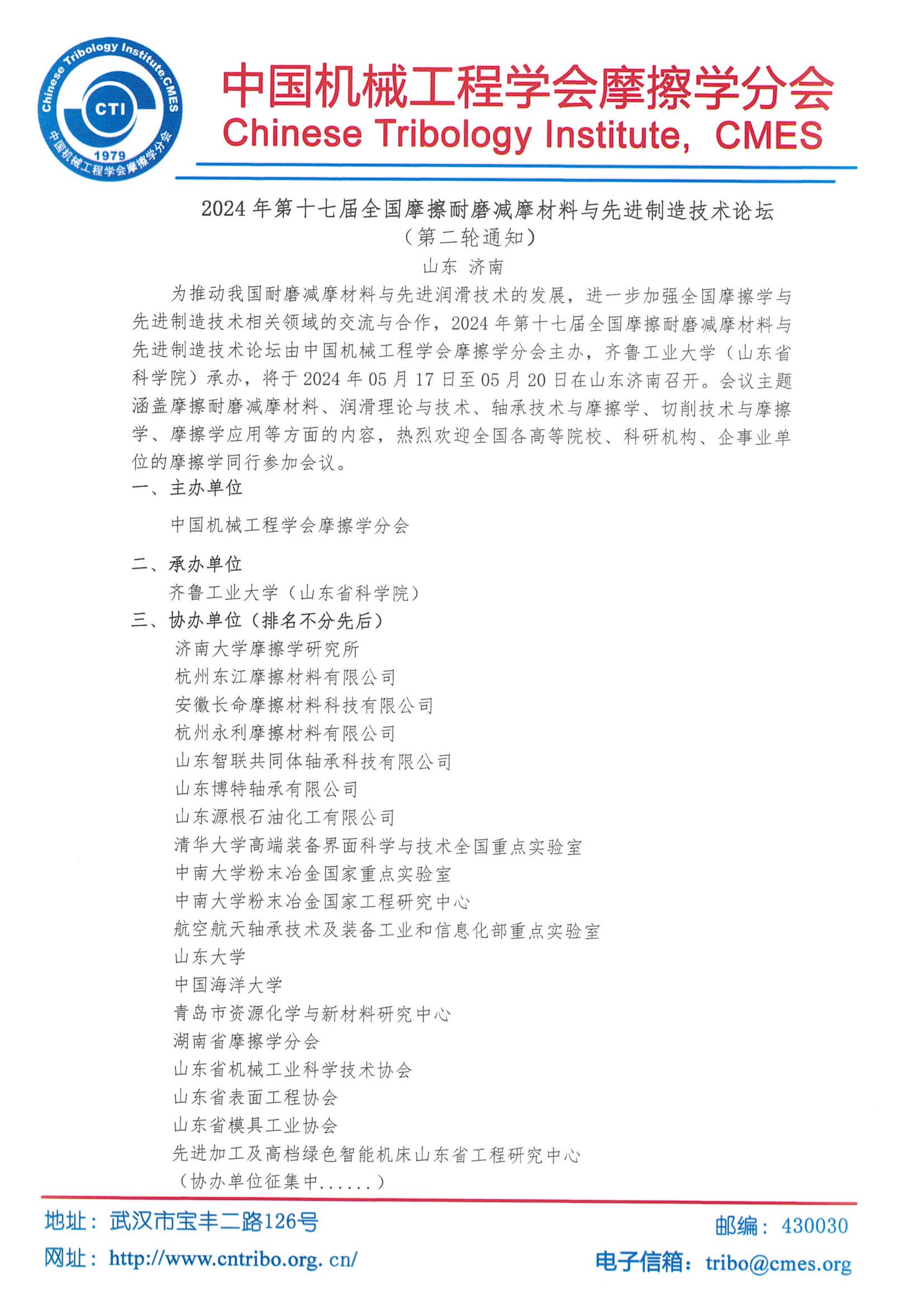 2024年第十七屆全國摩擦耐磨減摩材料與先進制造技術論壇 (第二輪通知)