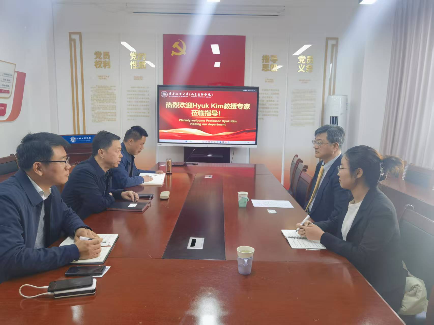 許崇海主任對Yoon Hyuk Kim教授的到來表示熱烈歡迎。他簡要介紹了學部在人才培養、師資隊伍、科學研究、學科與平臺建設、行業服務等方面的工作進展和主要成效;希望通過Yoon Hyuk Kim教授此次來訪,雙方加強溝通,促進了解,建立兩校機械工程學科的緊密聯系,共建人員交流機制,在醫工結合新的交叉學科領域開展深入合作。Yoon Hyuk Kim教授對許崇海主任的邀請表示感謝。他介紹了慶熙大學的發展歷程以及目前學科建設情況,著重介紹其本人及團隊在生物醫學工程、運動生物力學等領域的研究進展。