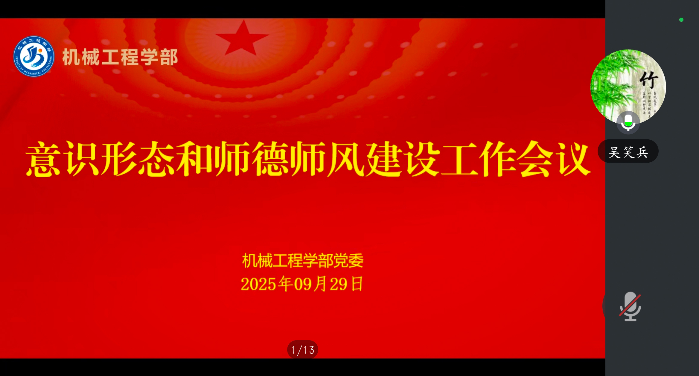 9月29日晚上,機械工程學部召開意識形態和師德師風建設工作會議,通報學部近期意識形態領域情況,啟動學部師德師風自查自糾工作。學部全體教職工參加了會議,會議采取視頻方式進行。會議由學部副主任陳照強主持。